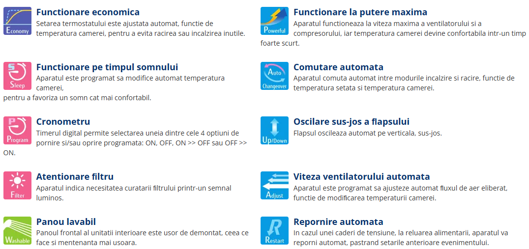 In cazul intreruperii alimentarii cu energie elctrica, aparatul de aer conditionat Fujitsu Airstage, fara a fi nevoie de alte interventii suplimentare.