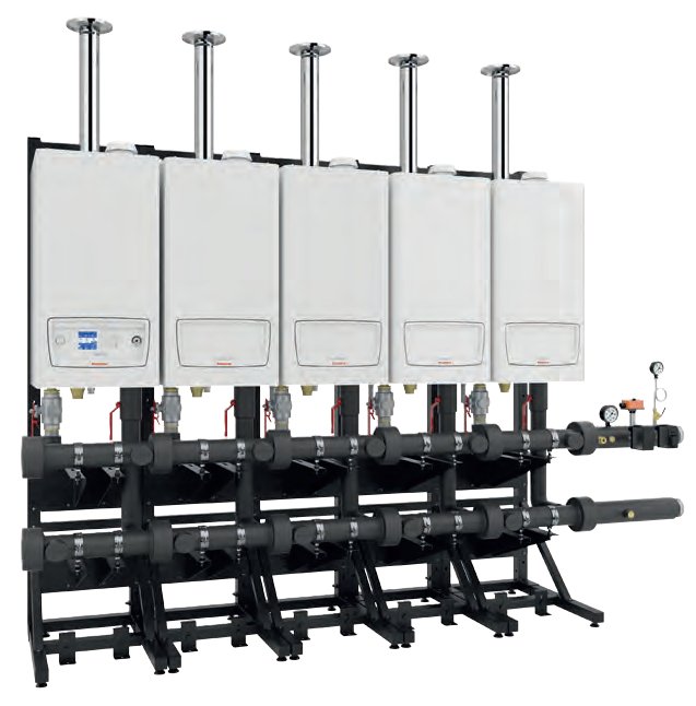 Prin racordarea hidraulica si electrica a 5 cazane in baterie, obtinerea unei puteri de 750 kW nu a fost niciodata mai usoara. Noua gamă necesita acum si mai puțin spatiu pentru instalarea in cascada.