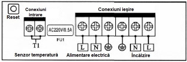 • Conexiune ieșire: 1 releu pentru încălzirea electrică